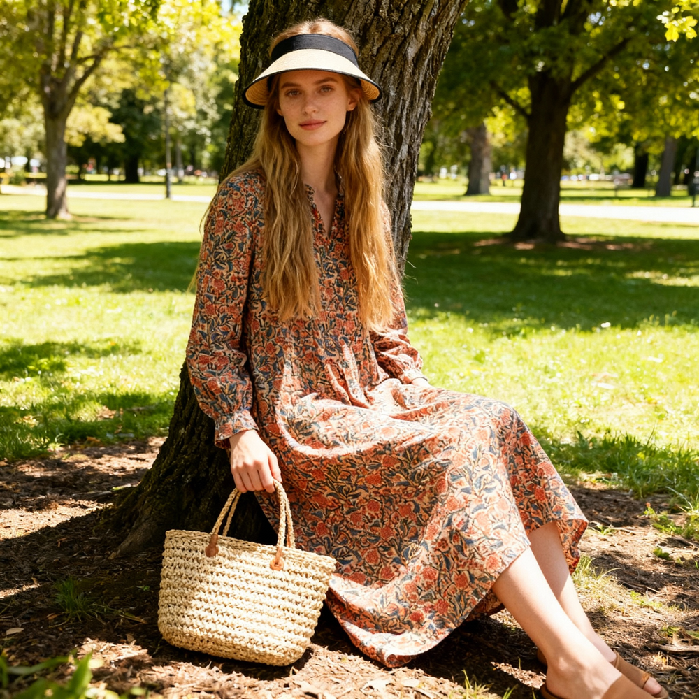 Whether dressed down with sneakers and a straw bag or elevated with wedges and layered necklaces, this dress is your ticket to embracing carefree, nature- inspired style. Let the Sunlit Garden Dress be yourgo - to for days when you want to feel as free and radiant as a summer’s day in full bloom.